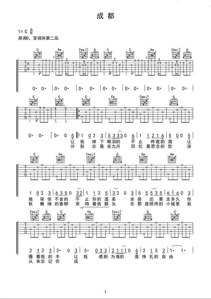 成都(赵雷吉他原唱) - 曲谱下载